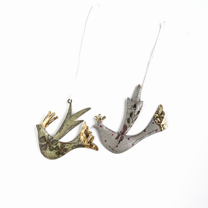 24 st. Koperen vogeltjes assortie hand gedecoreerd
